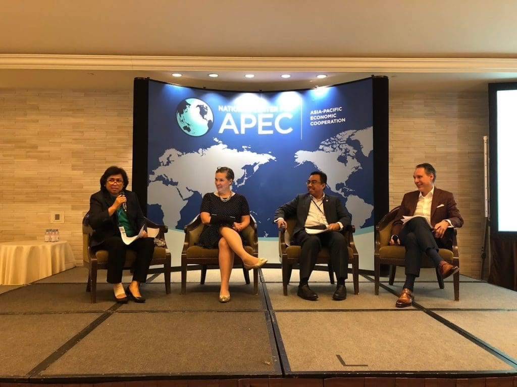 - Panelists share perspectives on APEC and ABAC 2020 priority areas. From left to right: Dato’ Rohana Tan Sri Mahmood, Chair ABAC 2020, and Chairman RM Capital Partners; Sandra Oudkirk, U.S. Senior Official for APEC and Deputy Assistant Secretary for Australia, New Zealand, and the Pacific Islands, U.S. Department of State; Mr. Hairil Yahri Yaacob, APEC SOM Chair and Deputy Secretary General (Investment), Ministry of International Trade and Industry, Malaysia; and moderator Scott Price, Chief Strategy and Transformation Officer, UPS.